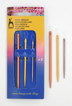 Agulhas de tapeçaria com olho flexível para costurar lãs ou fios mais espessos e macios.
